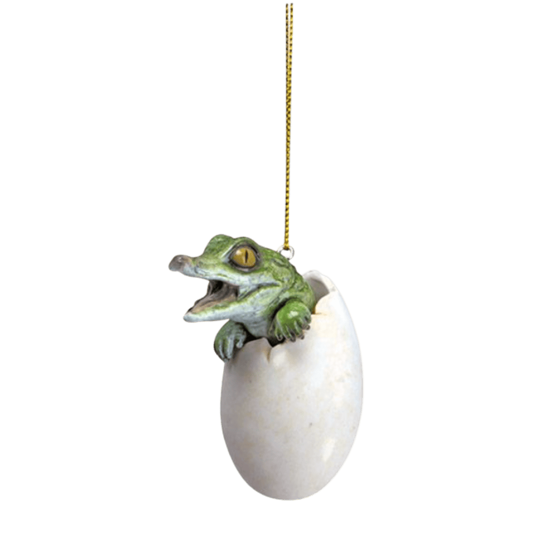 This high-gloss resin ornament captures the exciting moment of a gator hatching in exquisite detail. Featuring the Gatorama, it’s a charming collectible for wildlife enthusiasts and a unique addition to any ornament collection.